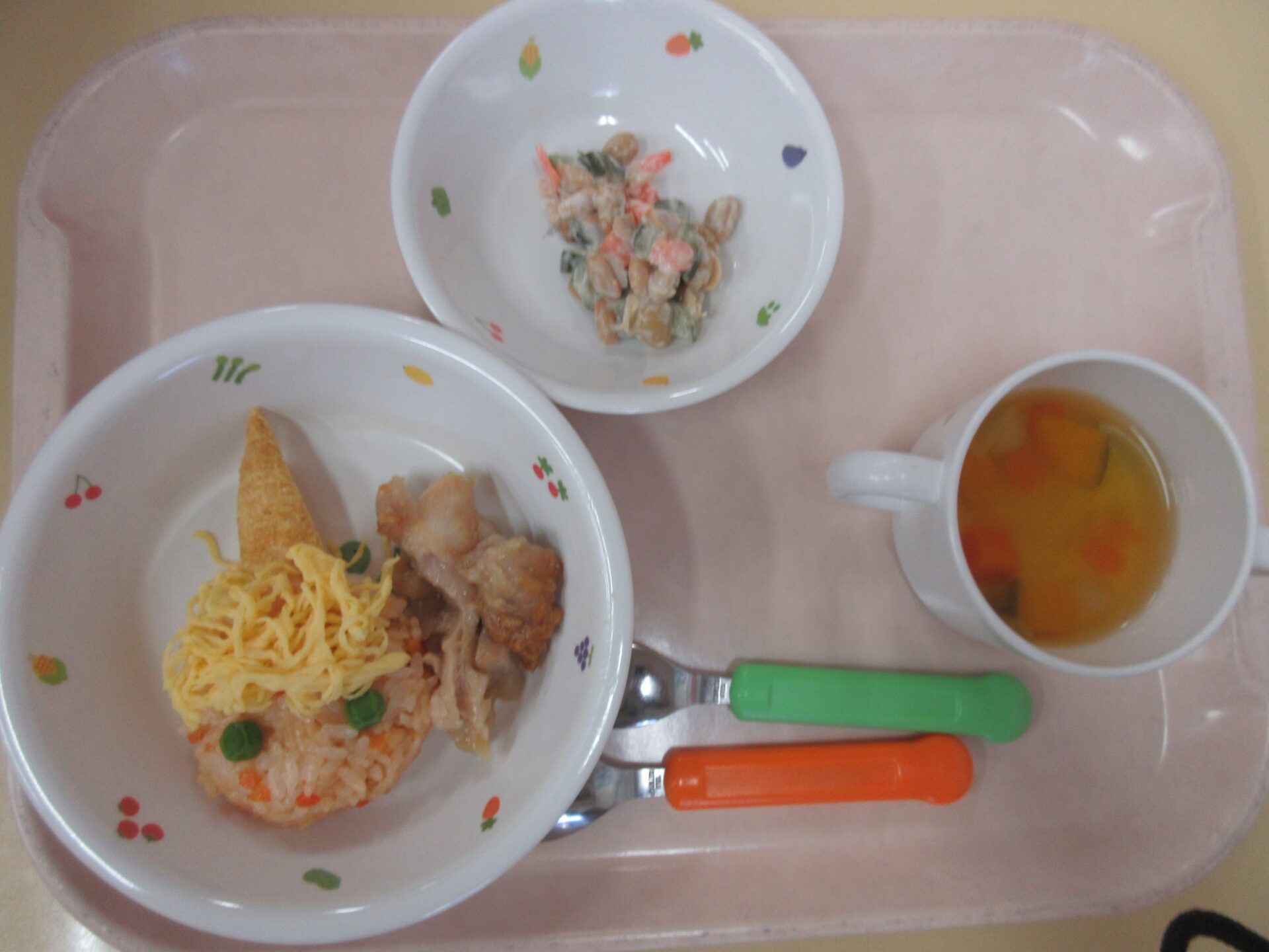 こんなかわいい「鬼ライス」の給食を食べて、ホッとしました。