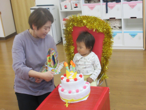 18日に2歳のお誕生日を迎えたRちゃん♪ぺんぎん保育園のみんなで一足先にお祝いをしました。