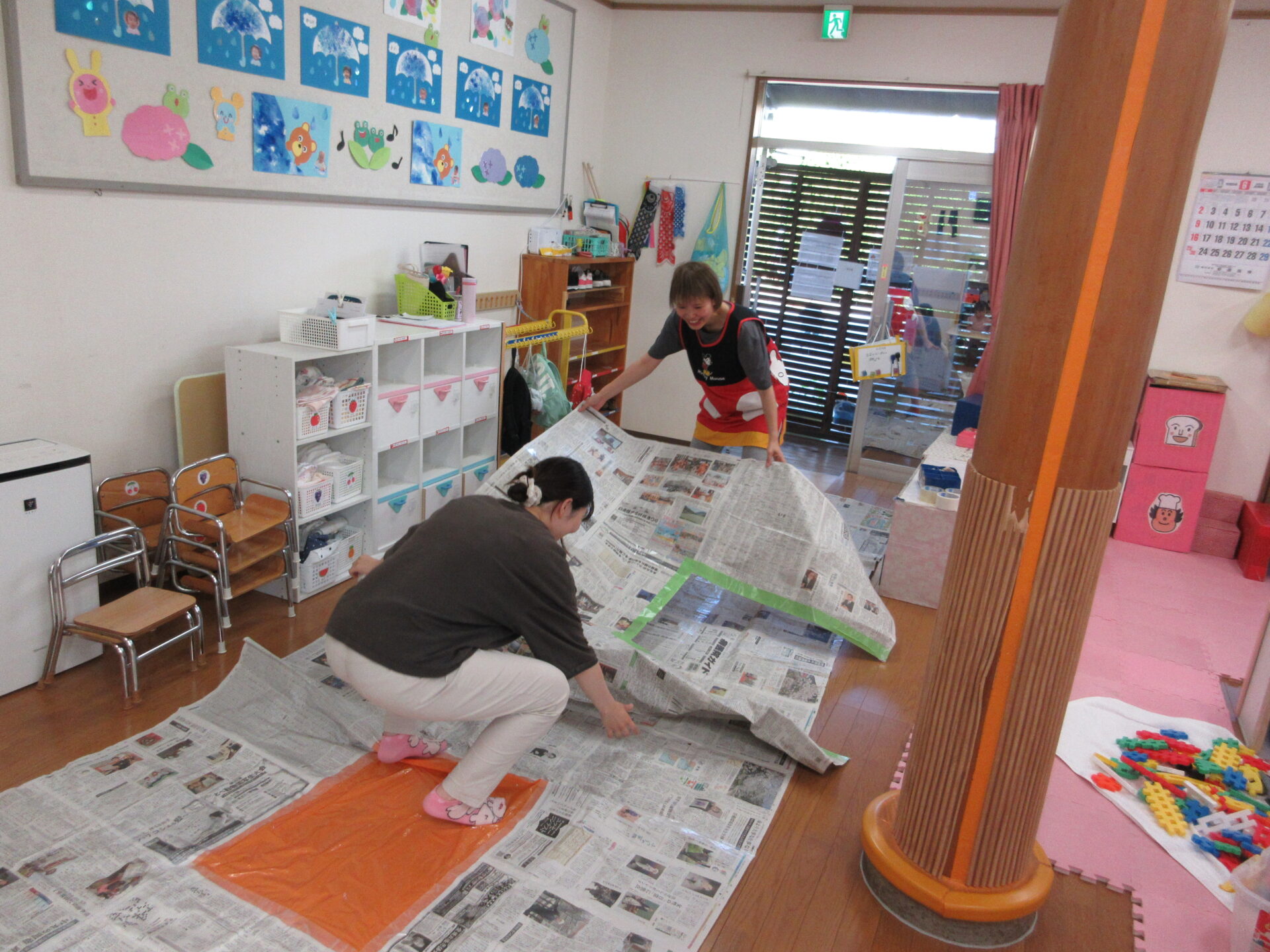 さてさて、保育士たちは只今子どもたちに楽しんでもらおうとある計画をしております。