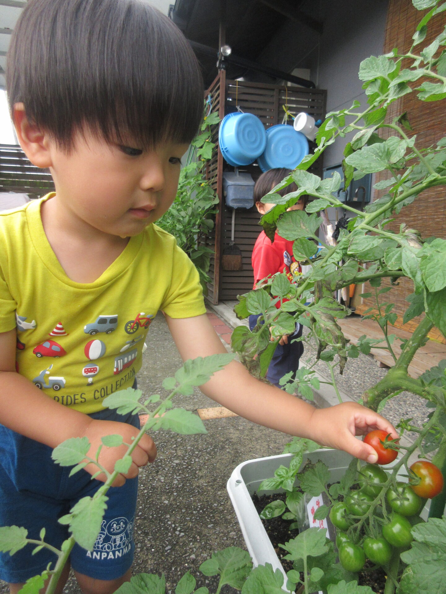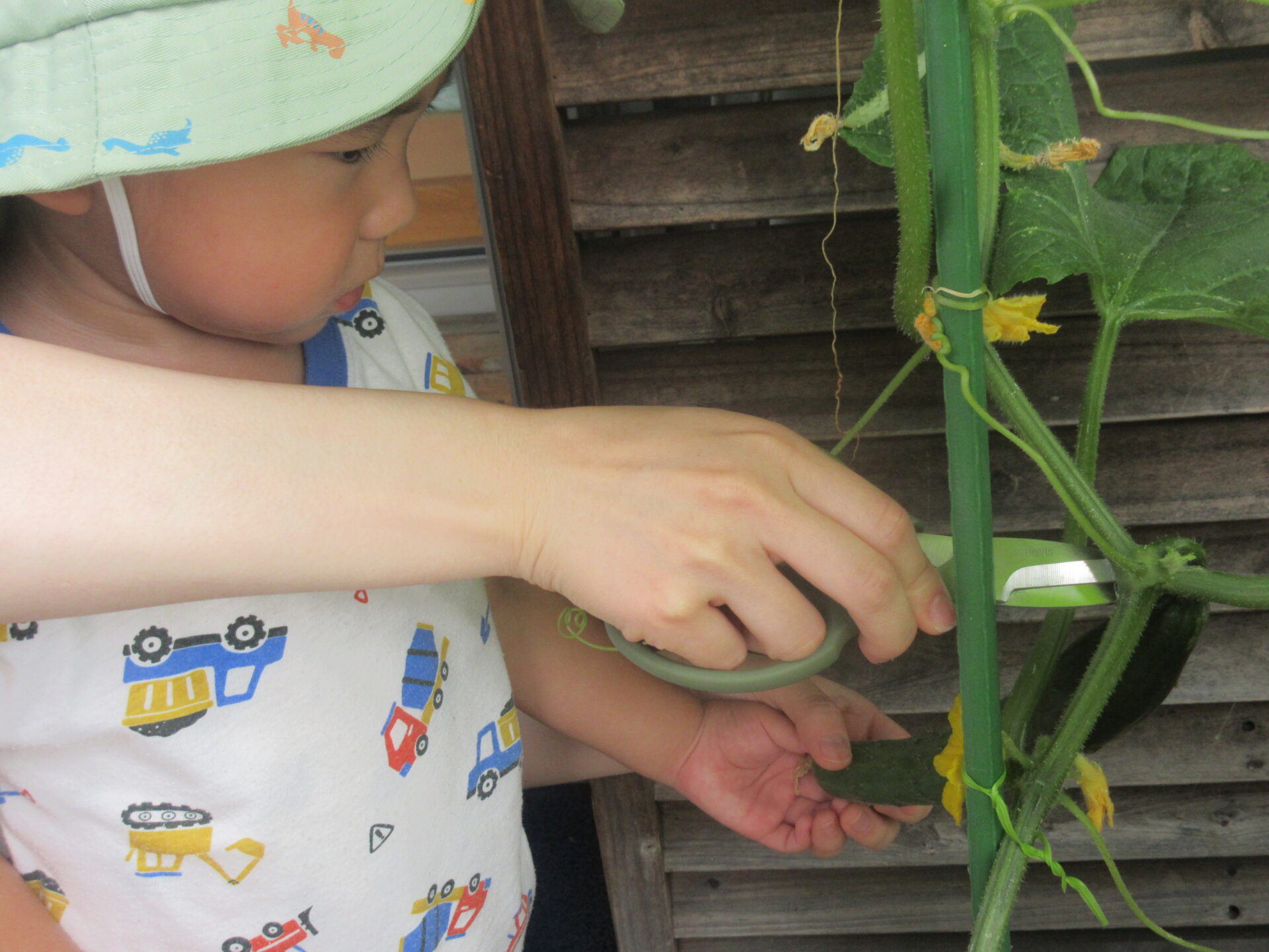 こどもたちも、野菜ができるまではなんとなく…でお水をあげている様子でしたが、少しずつお花や小さな実ができ、そこからようやく野菜になり「やっとできたねー!」と嬉しそうでした^^