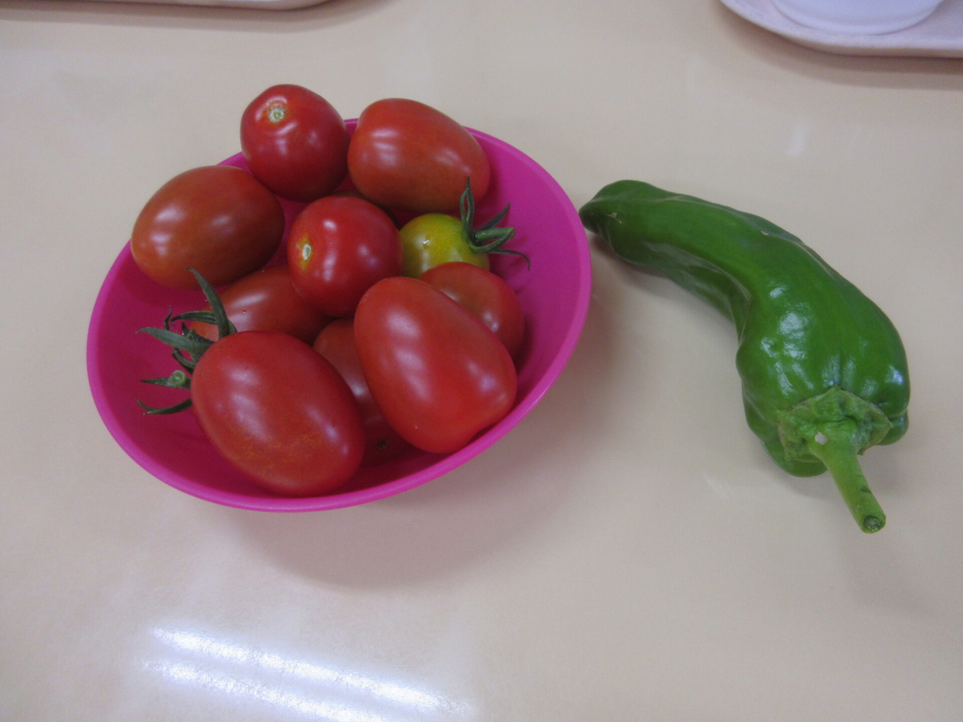 きゅうり・トマト・おくらが上手に実をつけ、待ちに待った収穫をすることができました!!