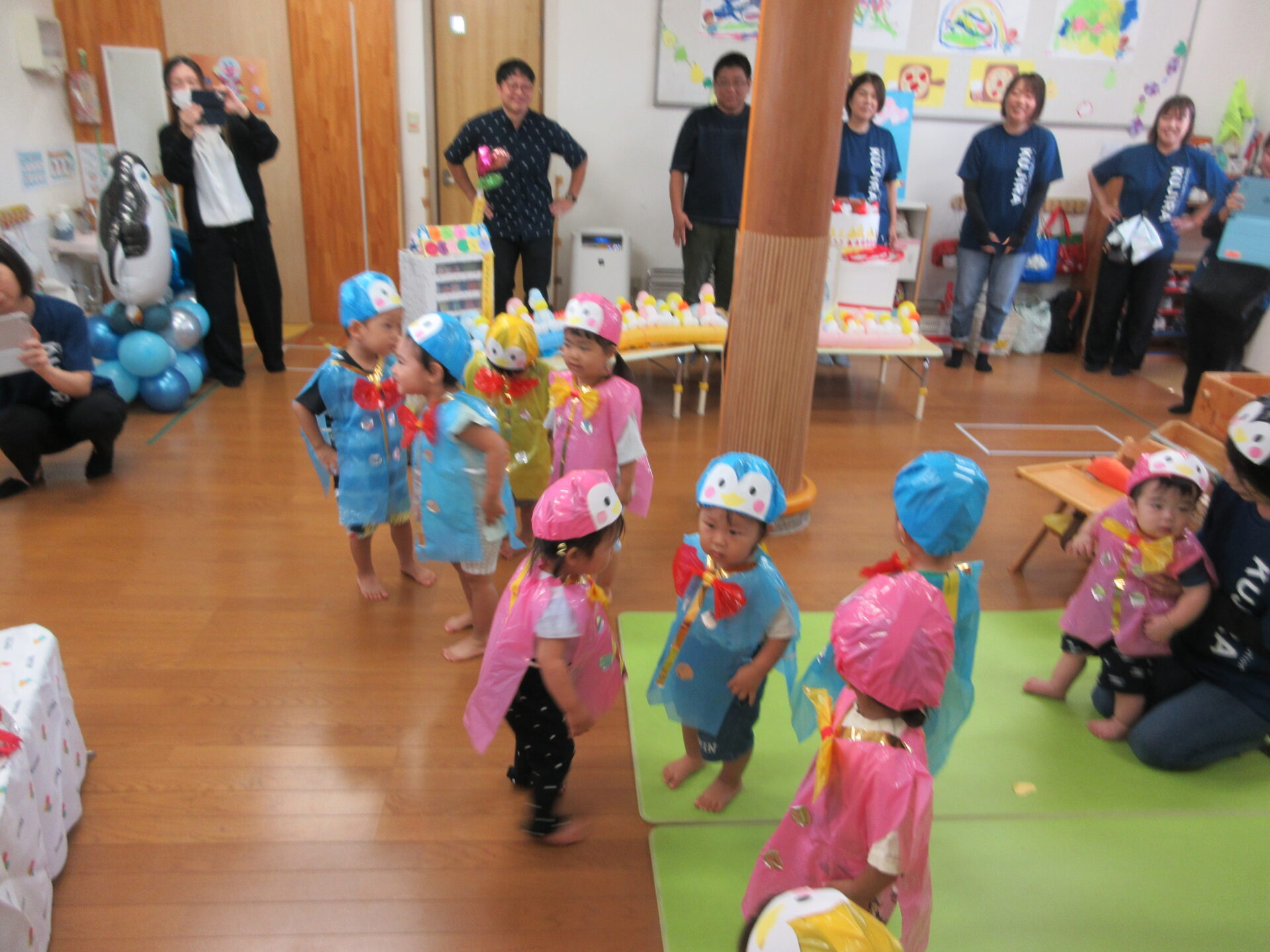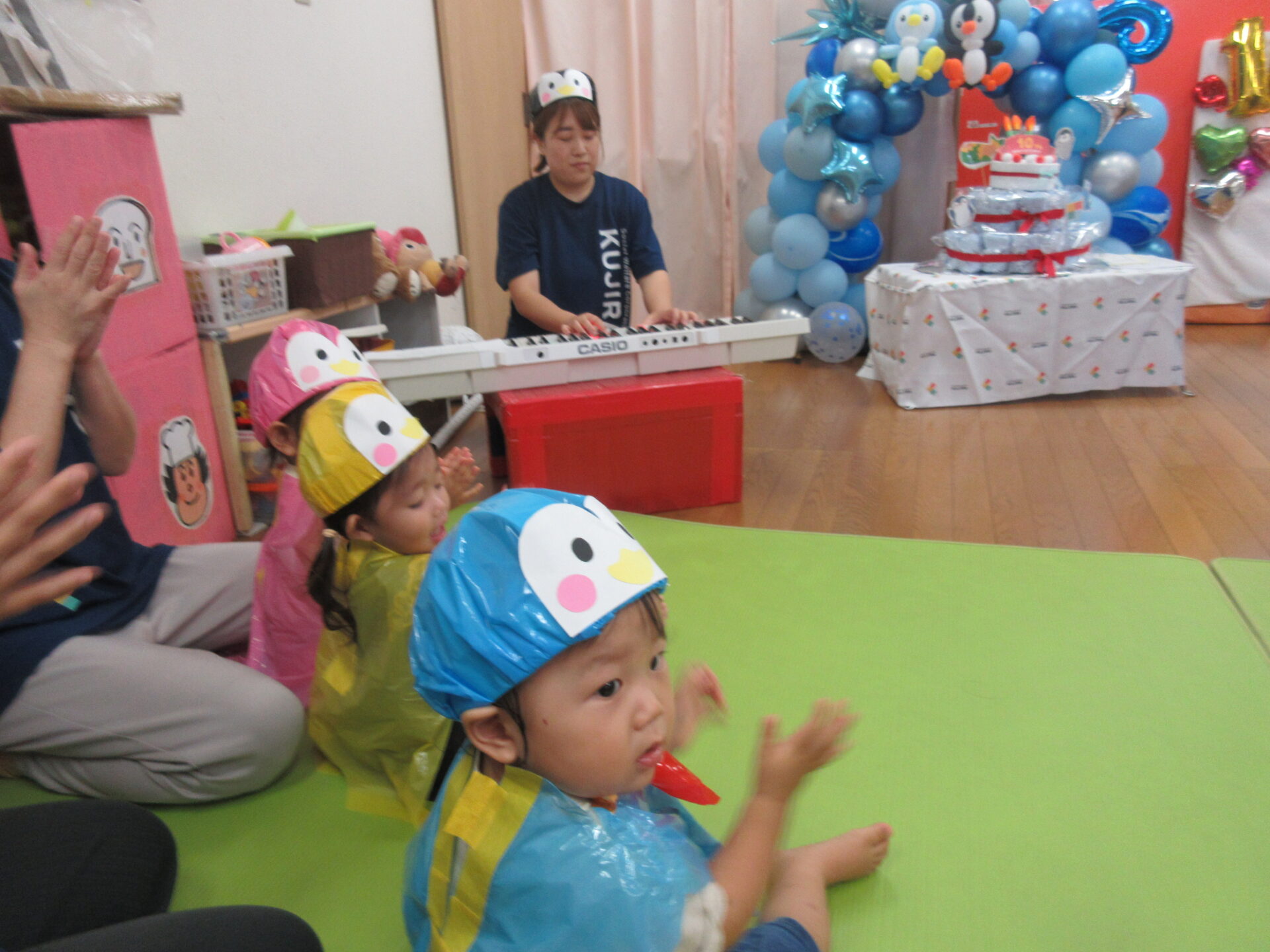 まずはぺんぎんのお誕生日をお祝いする、歌を歌いました♪