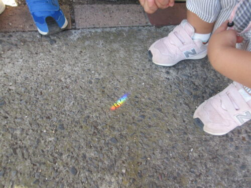 自転車の反射板から地面にうつった『にじ』をみんなで見て楽しんでいました。