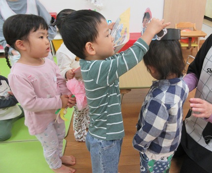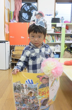 ぺんぎん組(2歳児)のAくん、31日は伊予ぺんぎん小規模保育園で過ごす最後の日でした。