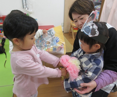 4月に入園した時は、まだ話せなかったA君ですが半年が経ちお話が上手になり、先生やお友だちとおしゃべりを楽しむようになりました。