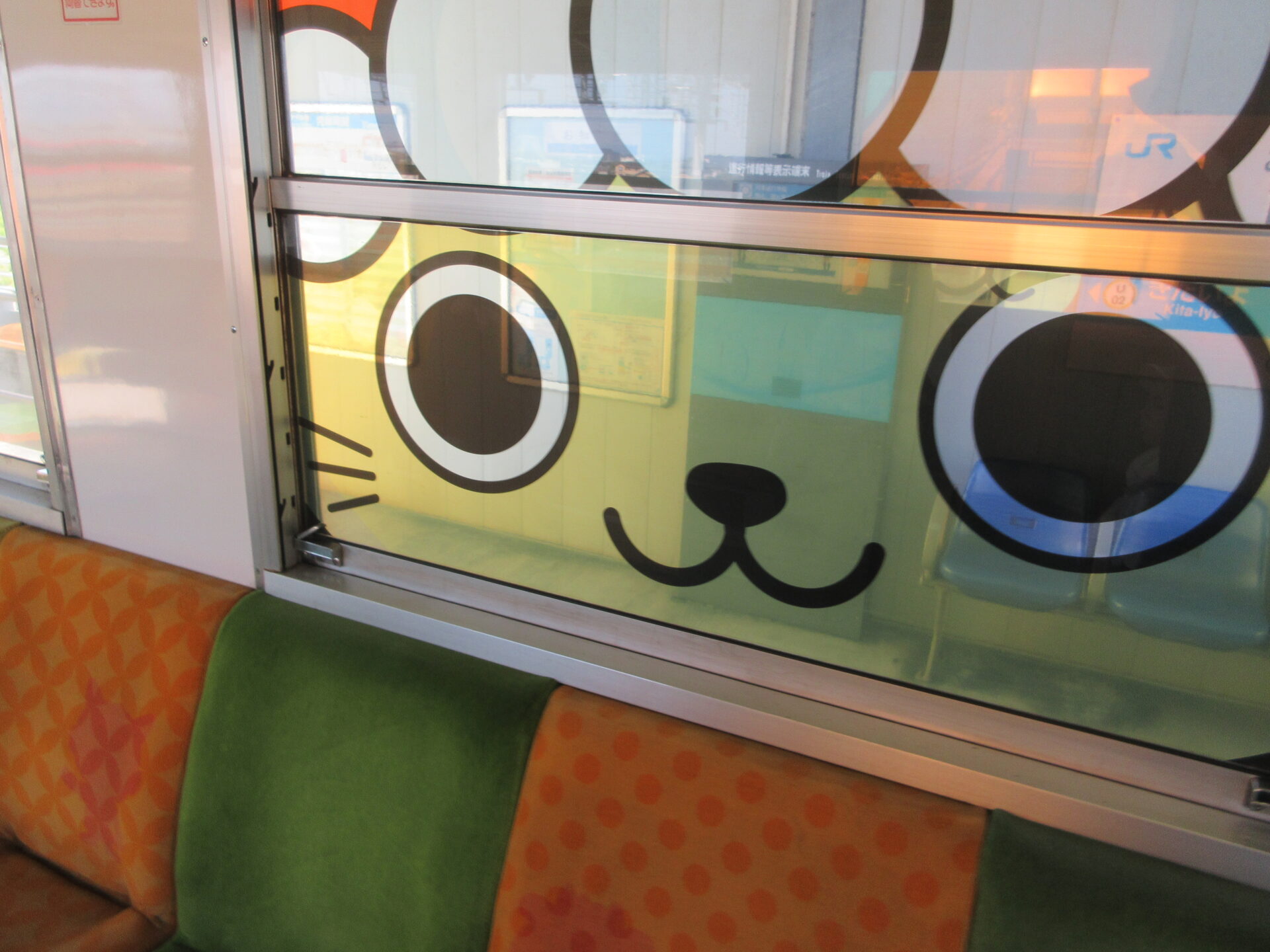 列車の中も窓ガラスにイラストや座席もみきゃんをイメージした色で、子どもも大人もテンション上がりました😊