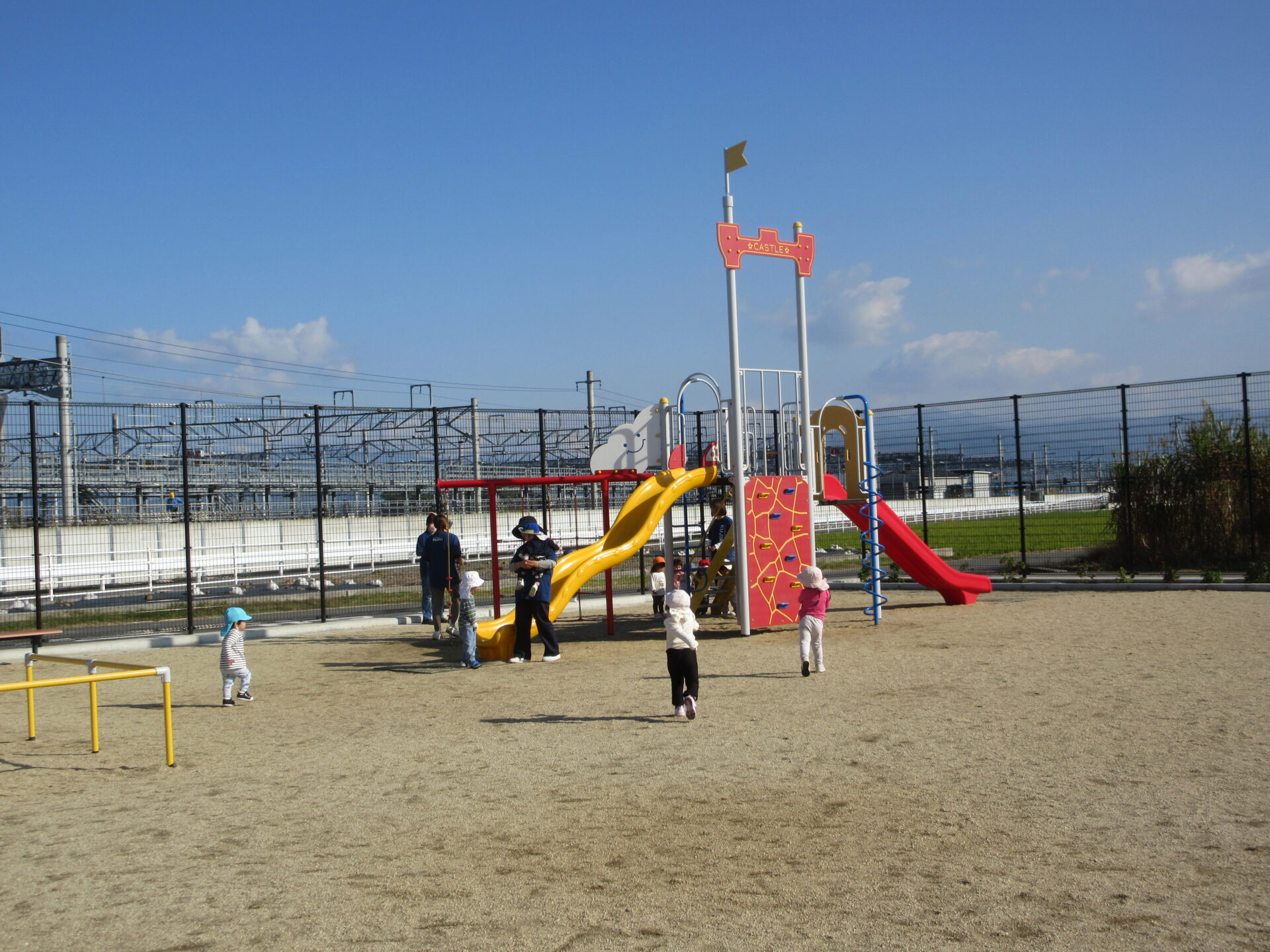 電車を降りると、公園はすぐそこ!公園が見えると「着いた~!」と声が上がりました。