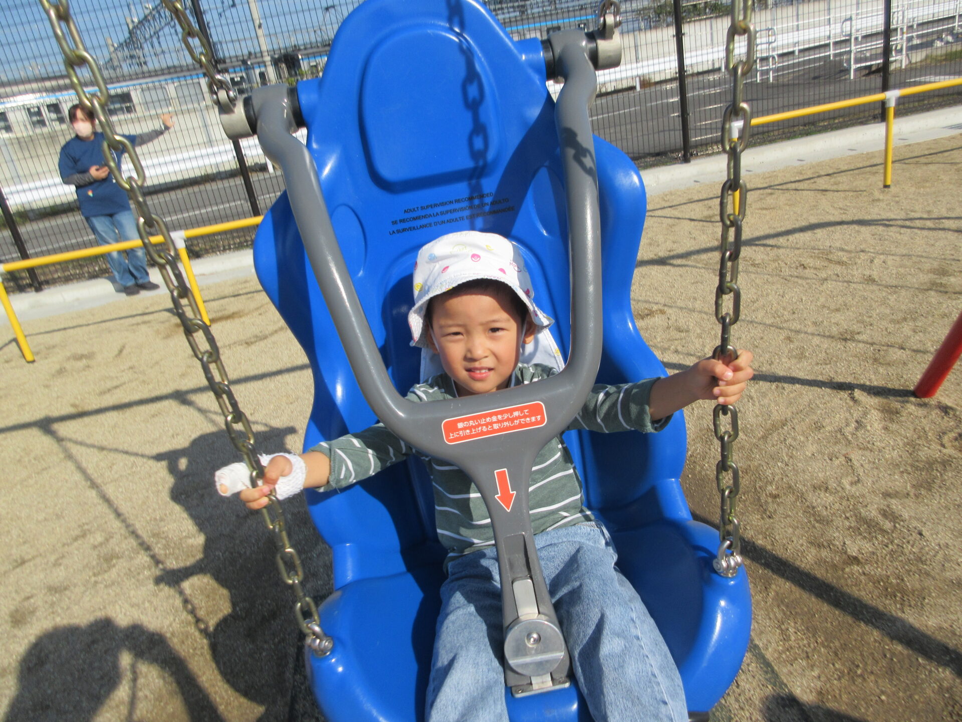 公園でのお約束を聞いた後、好きな遊具で遊びました。