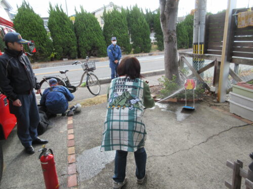 年に一回必ず行う通報訓練と消火器の使い方を実際にすることで、いざという時の行動力を養っていきたいと思います。