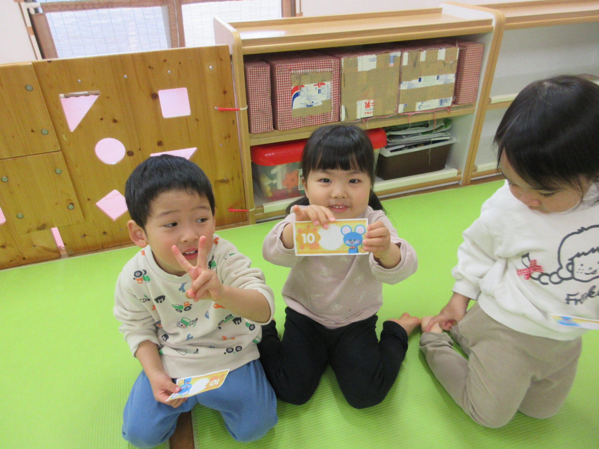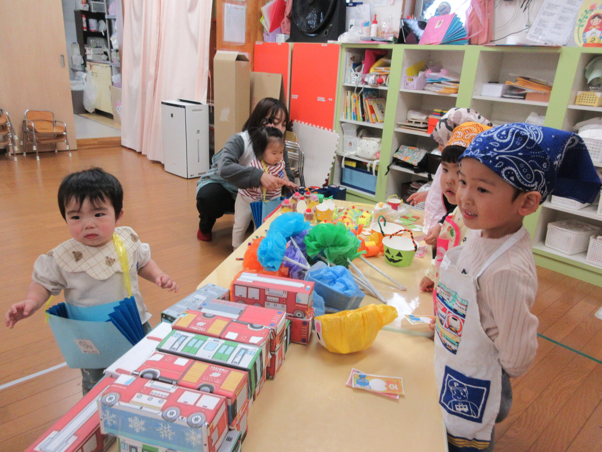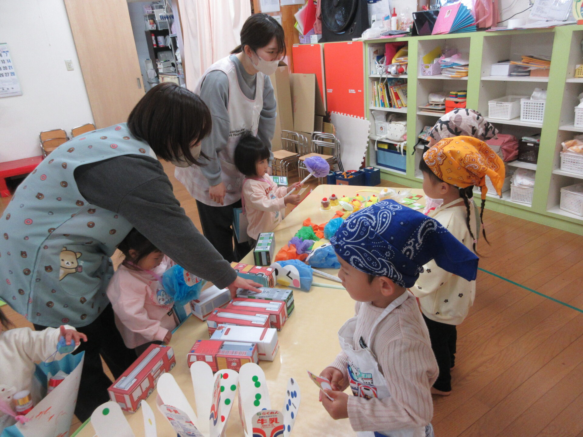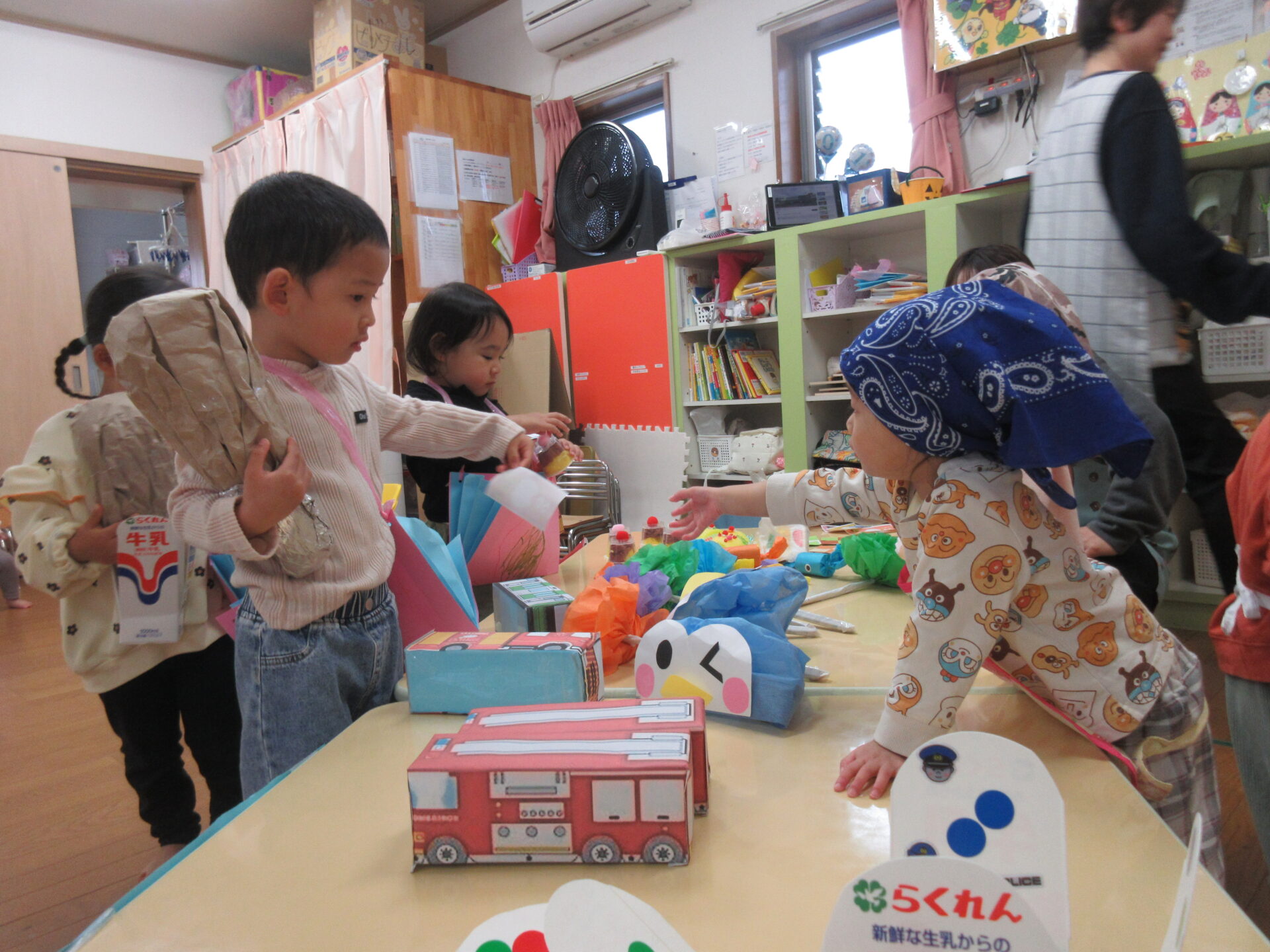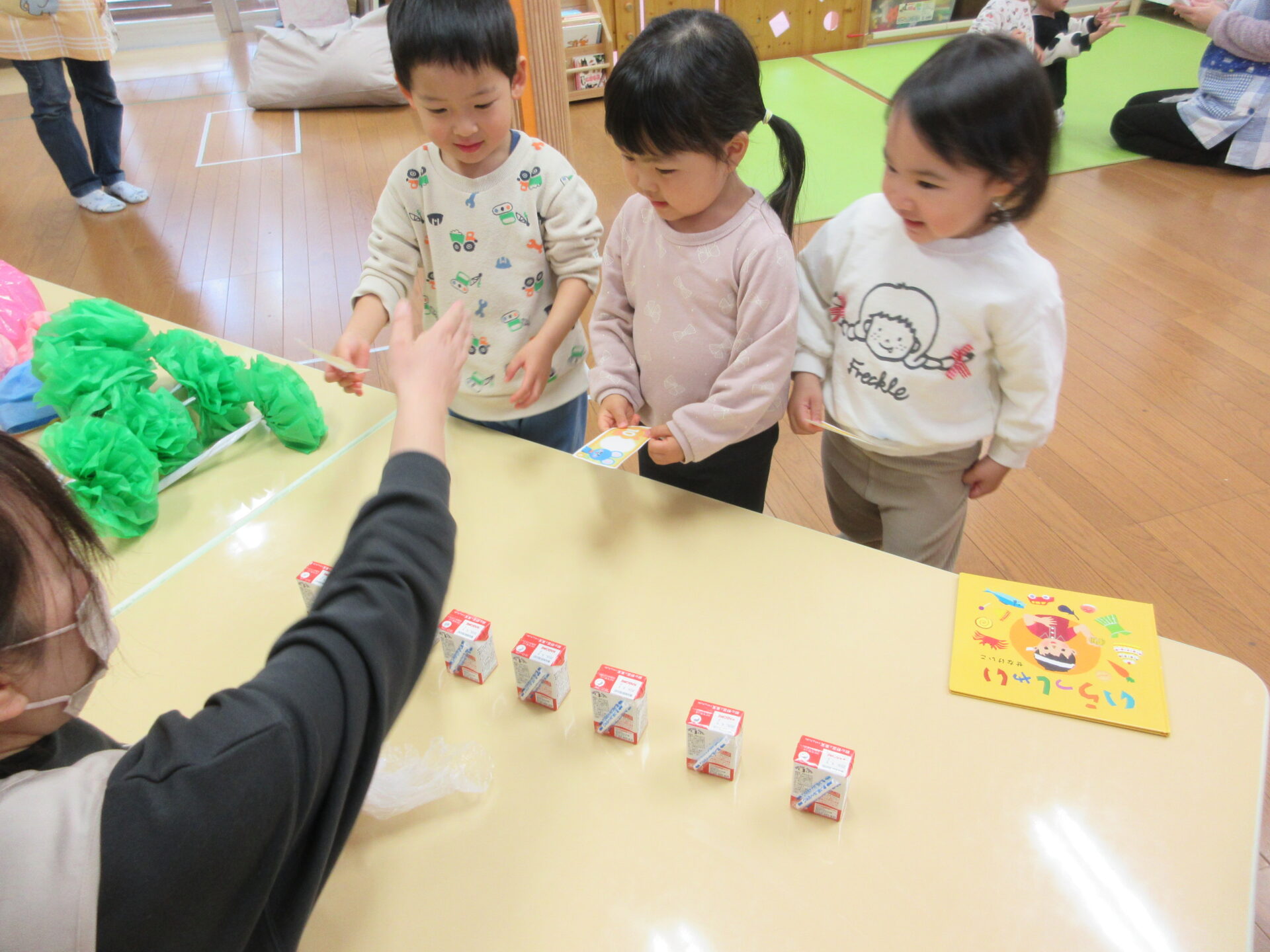 ジュースを飲んだ後は、ぺんぎん組(2歳児)がお店屋さんとなり、楽しんでいきました。