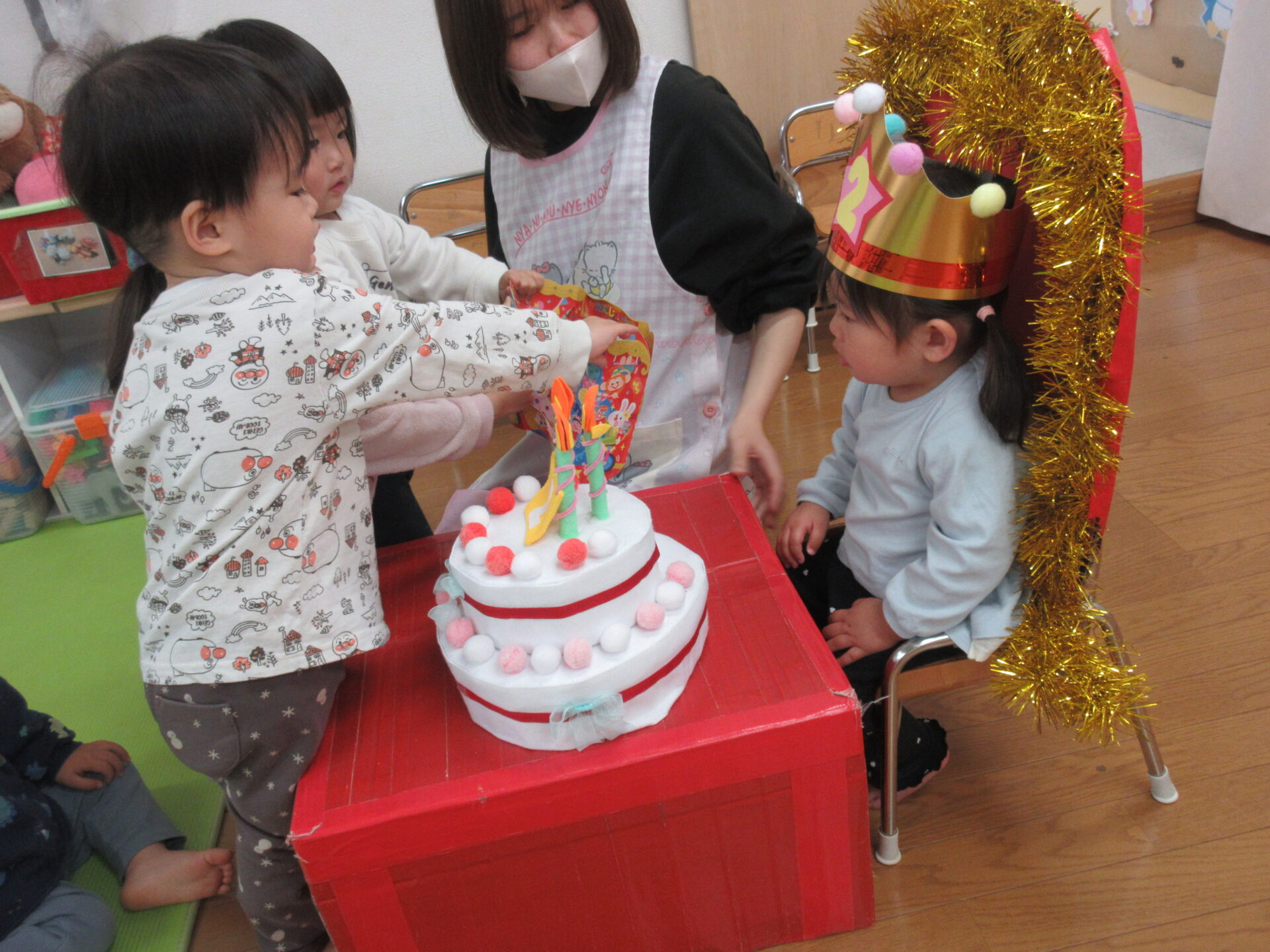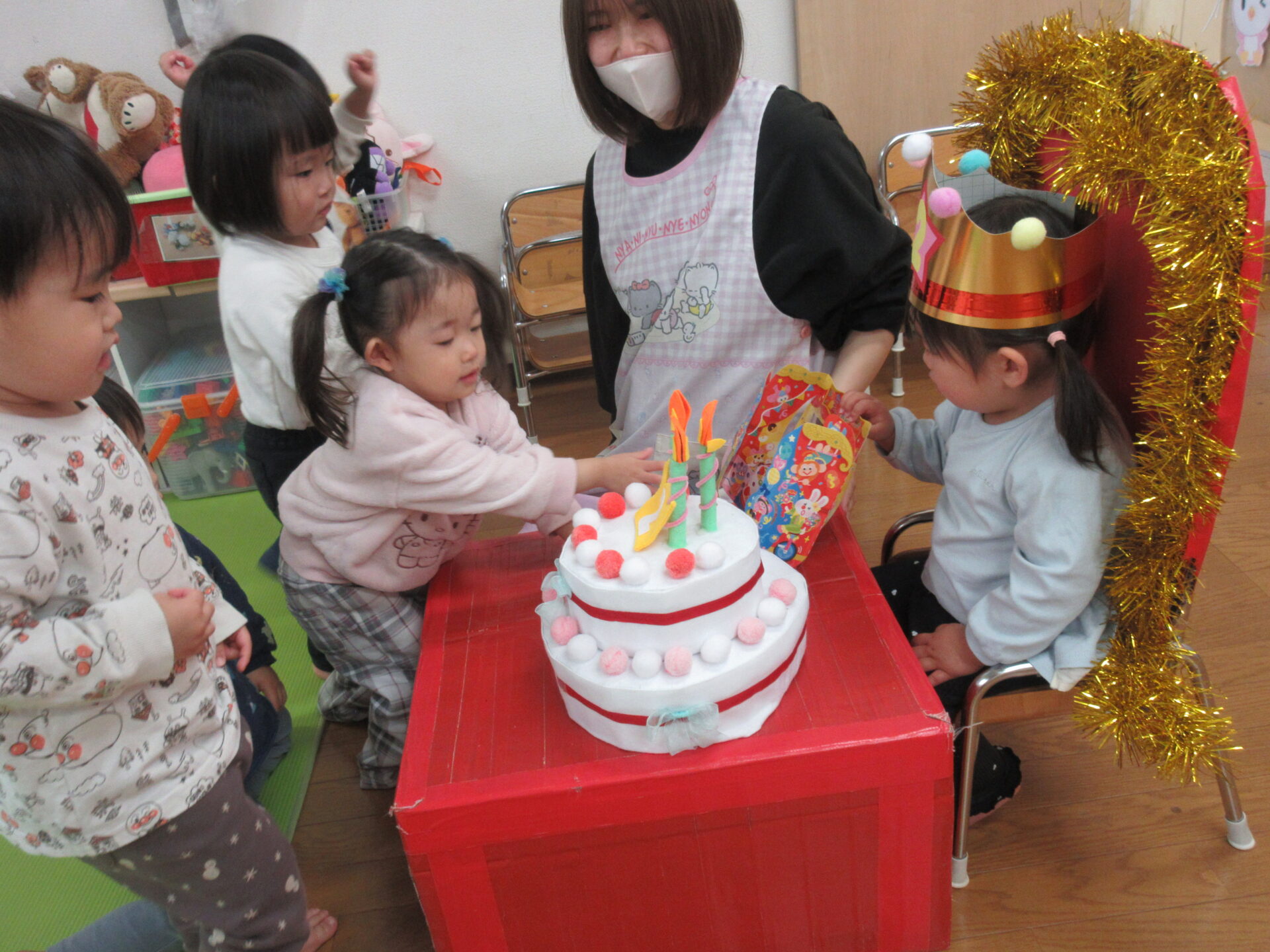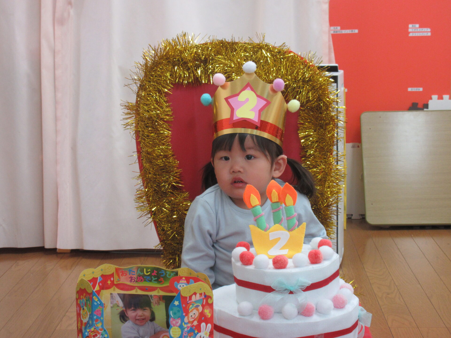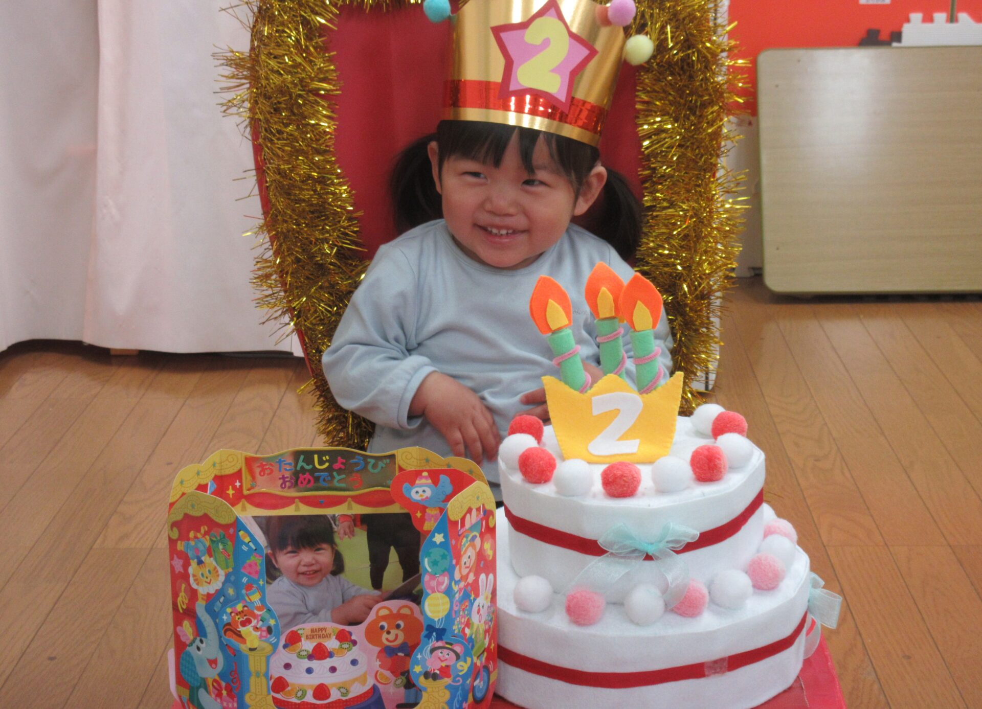 お誕生日の歌をみんなに歌ってもらい、最後にはいつもの可愛い笑顔のAちゃんでした♪