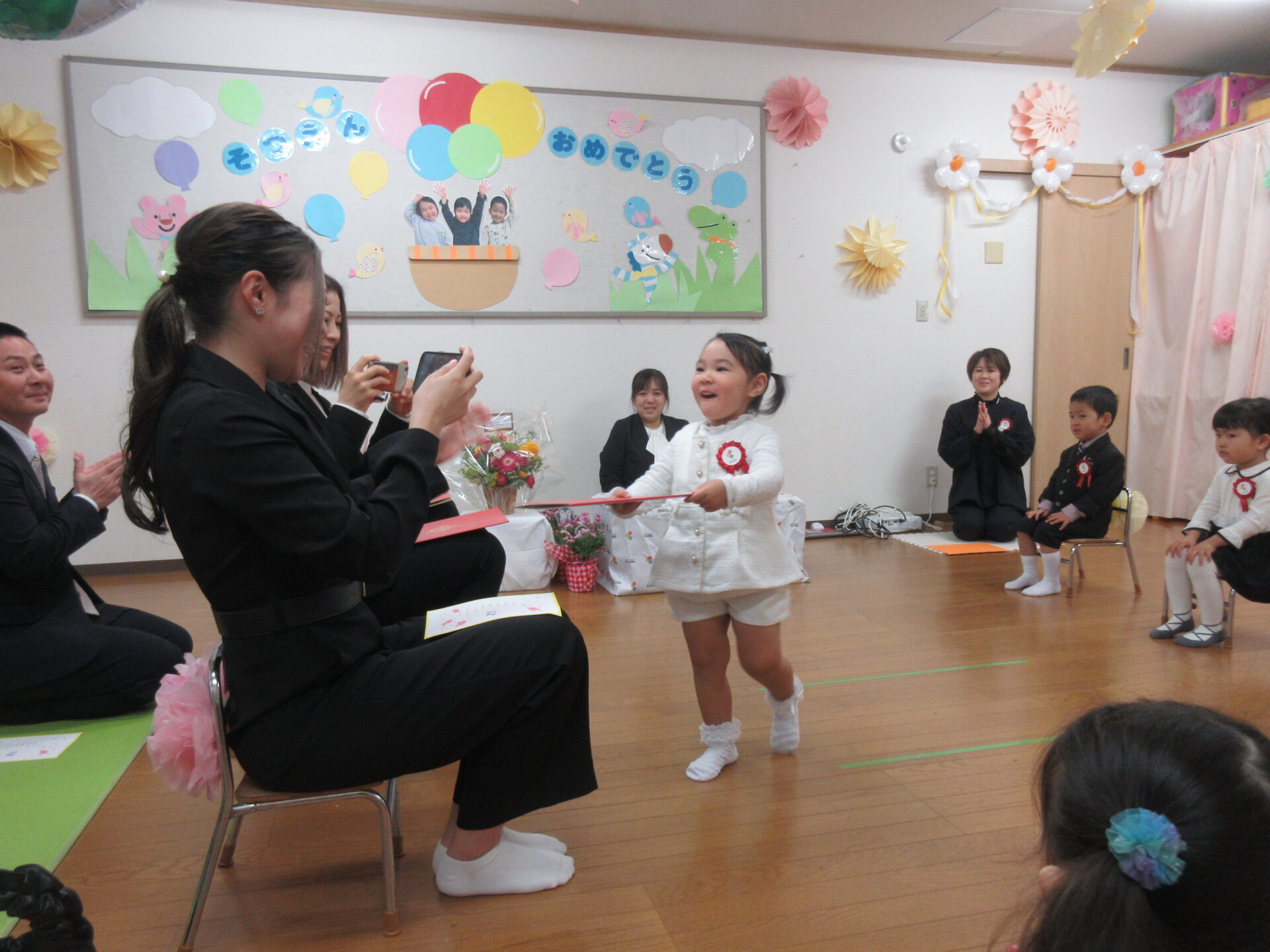「おめでとう」と渡してもらって、「ありがとう!」としっかり言えました。