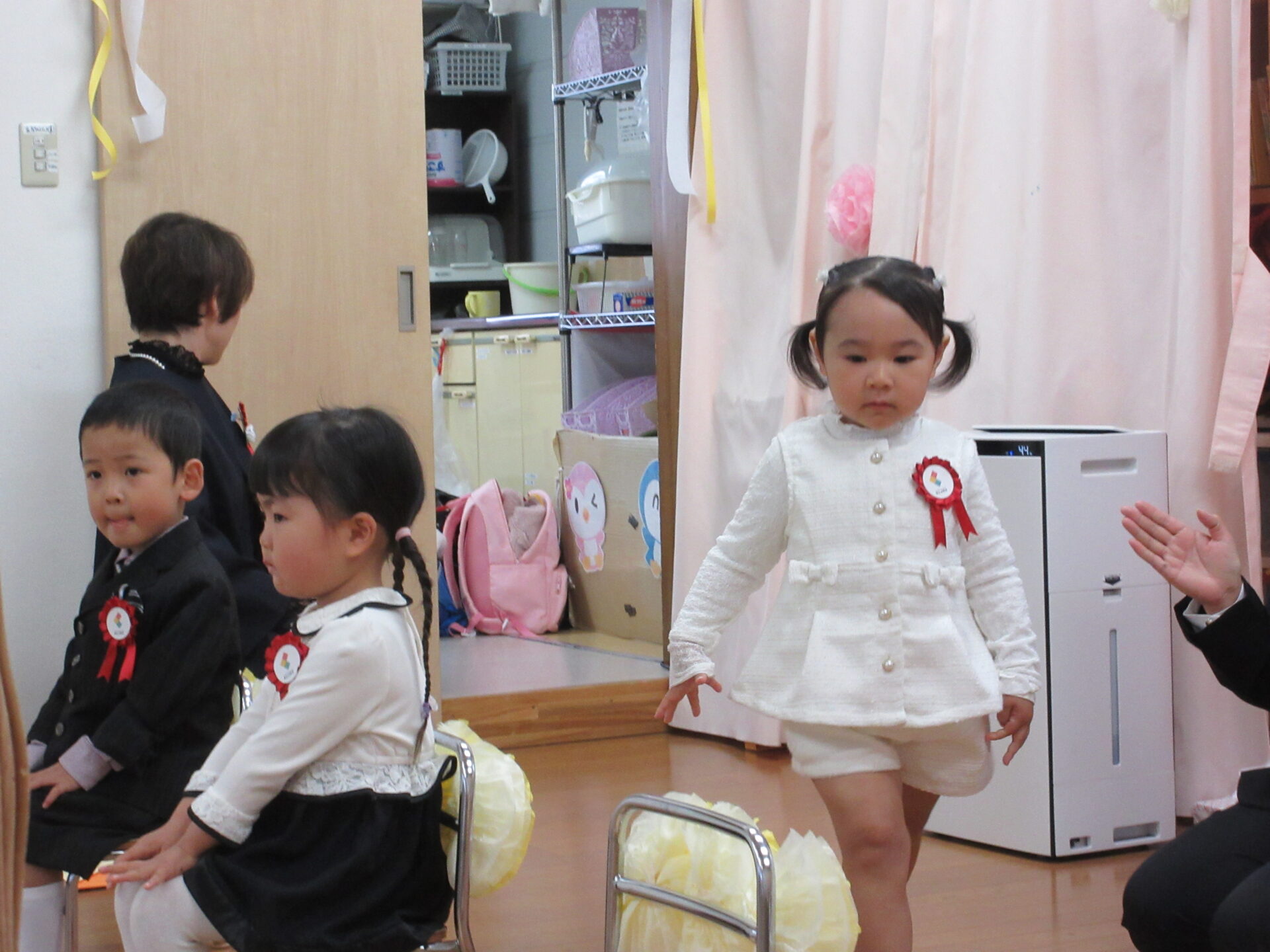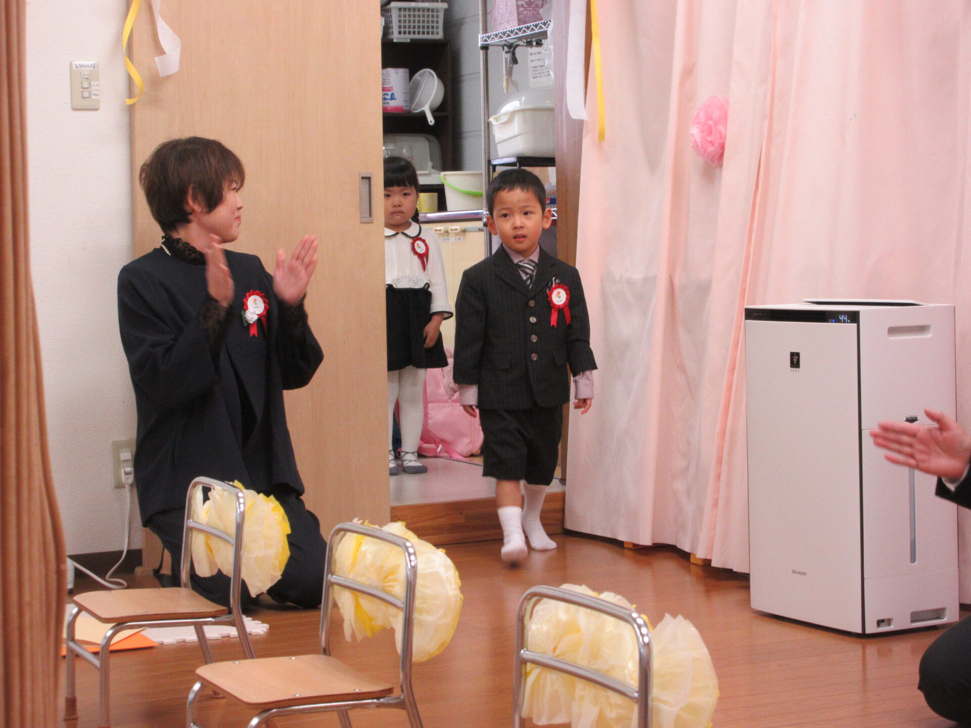 みんなからの拍手の中、卒園児入場です。