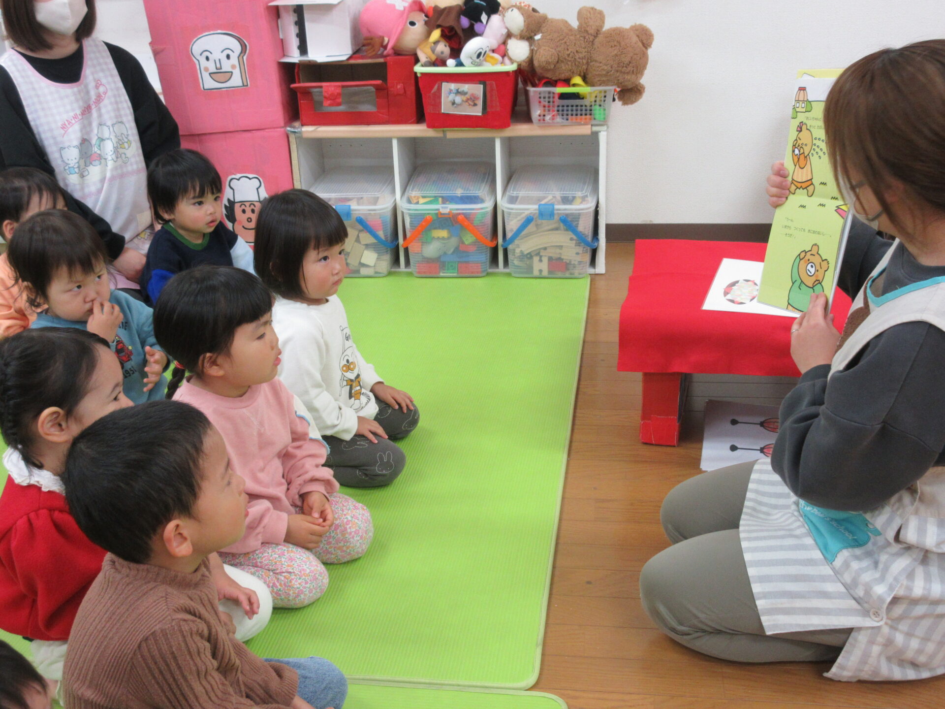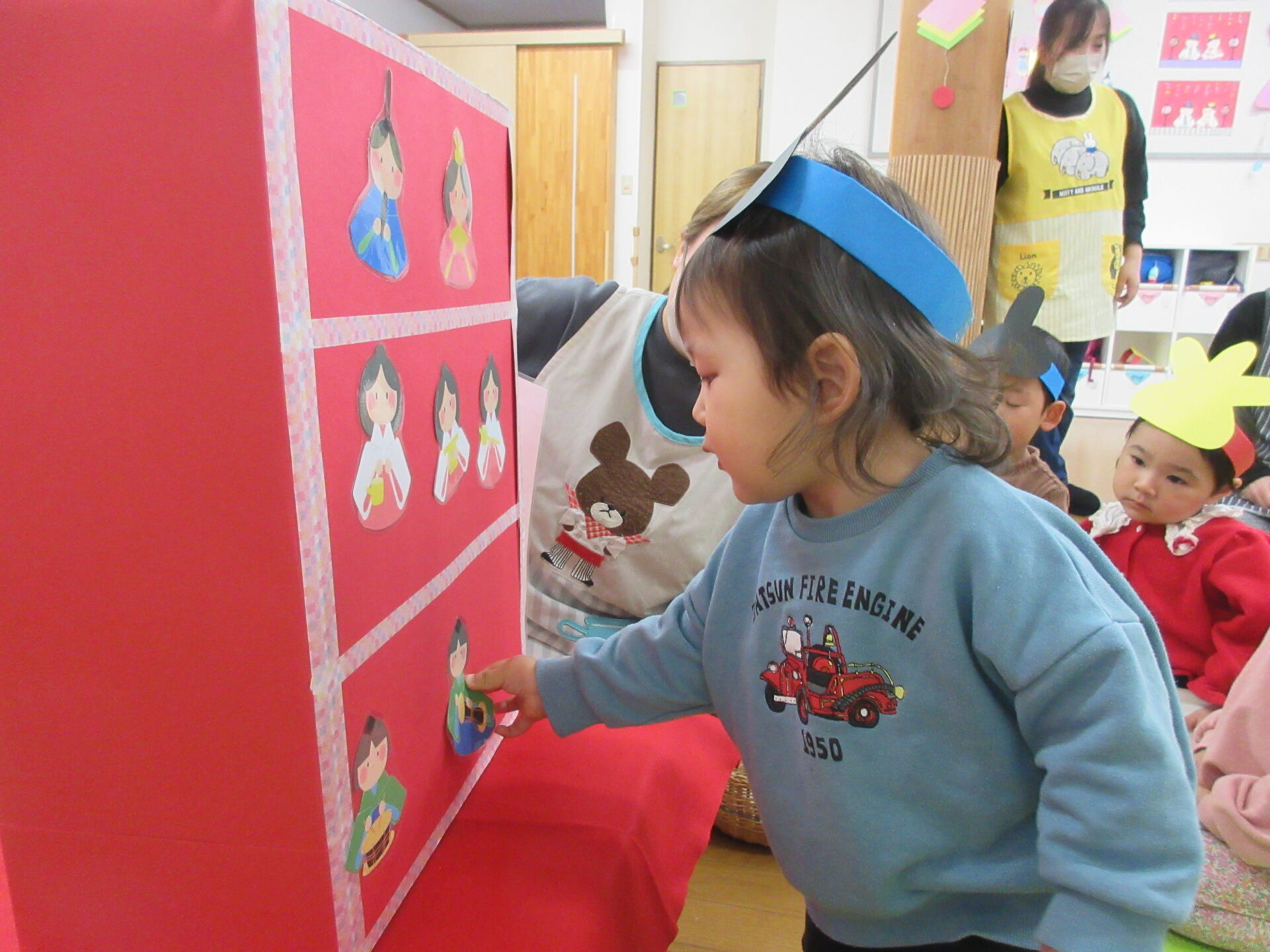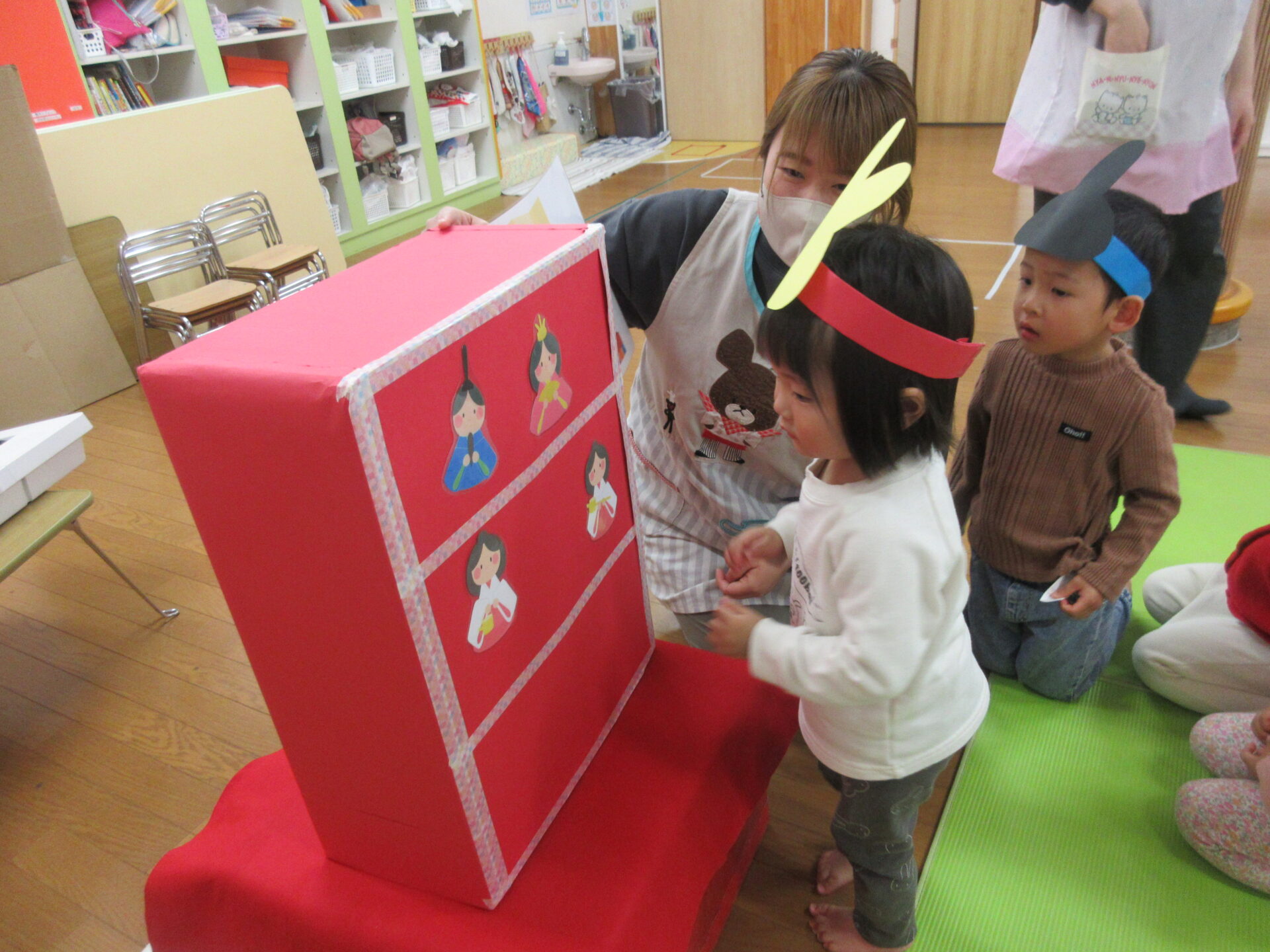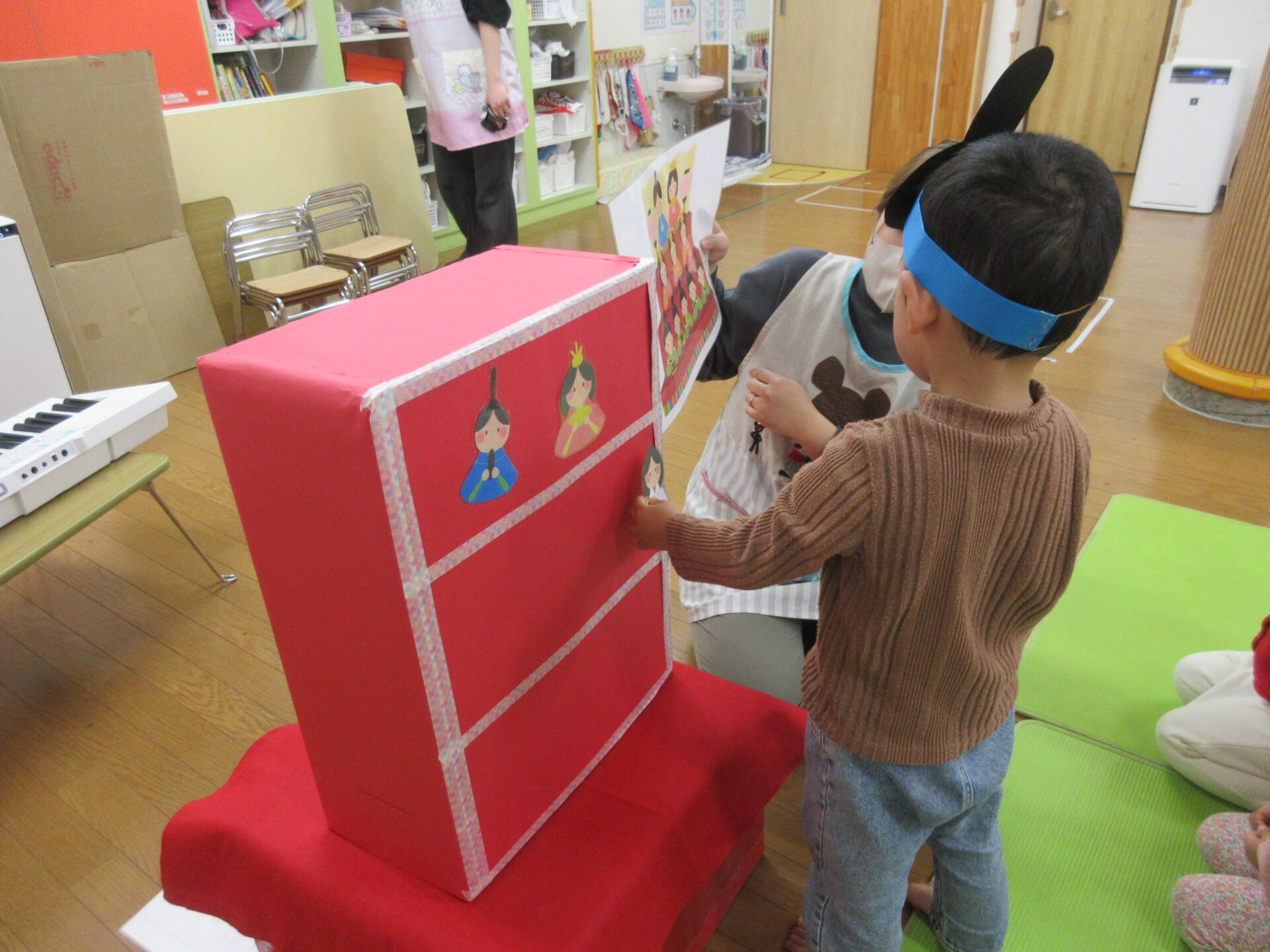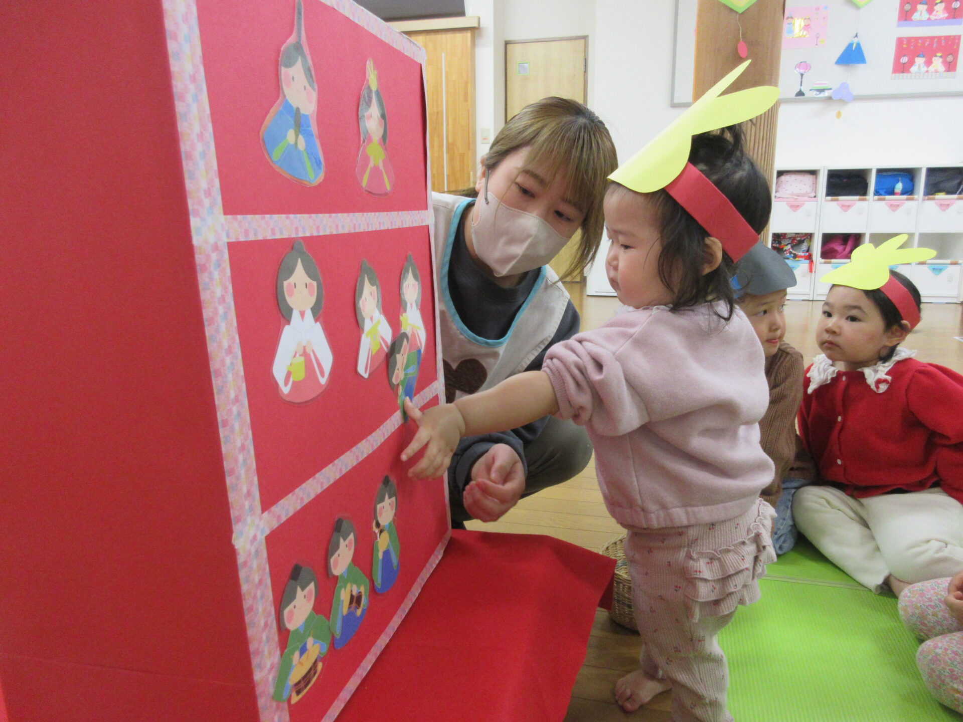ひなまつりってどんなことをするのかな?とお話を聞いています😄