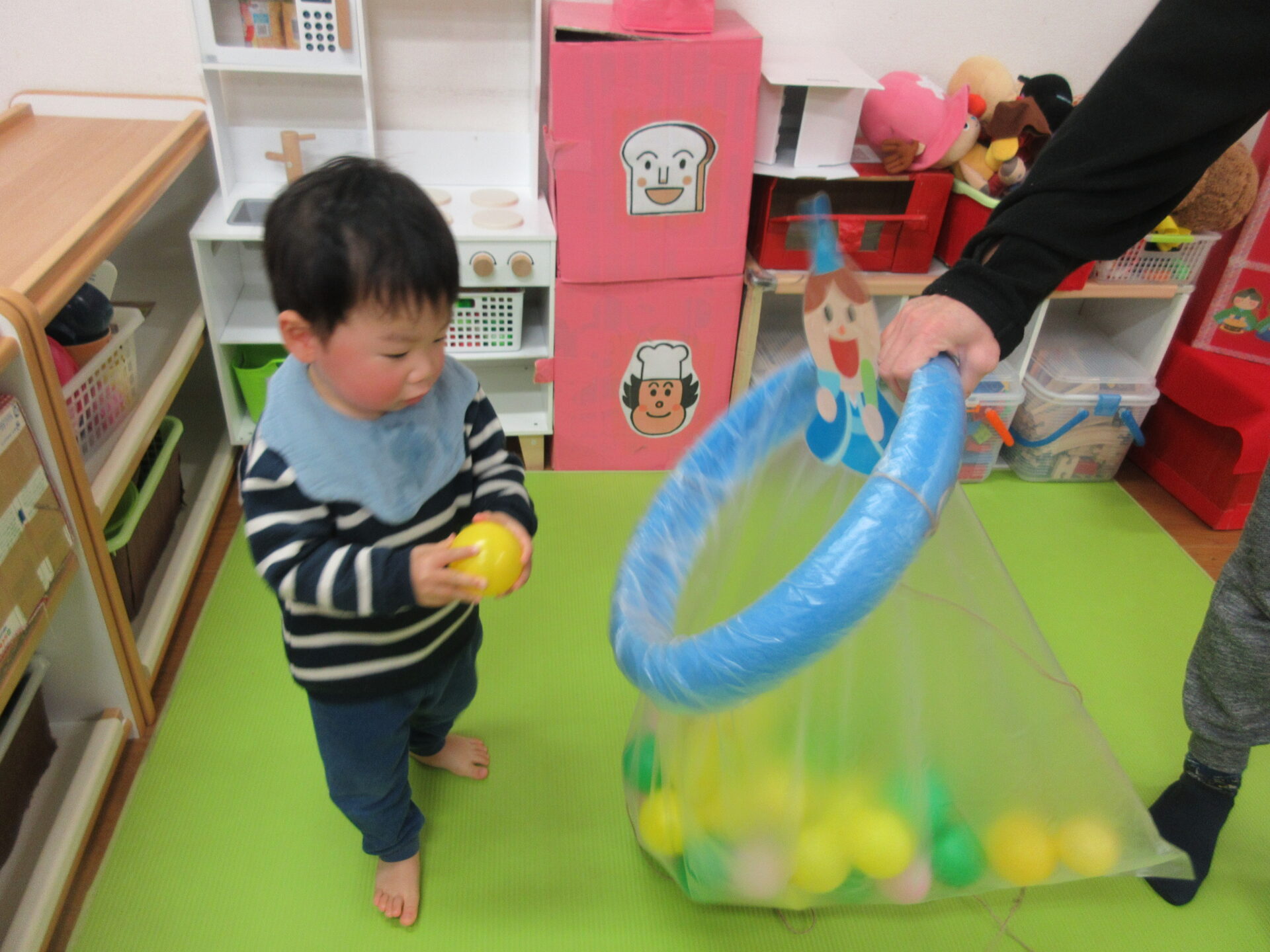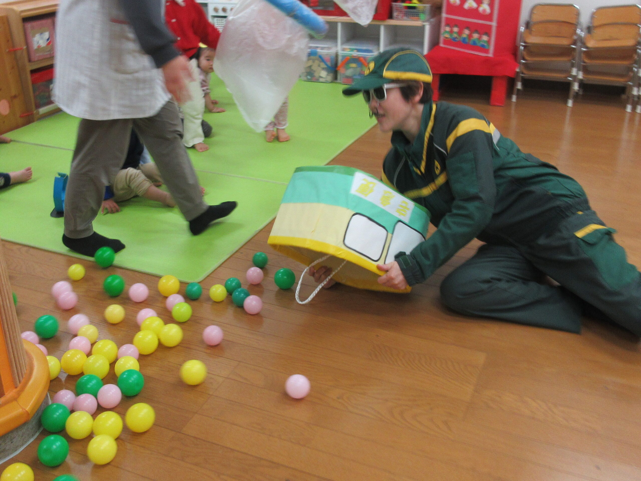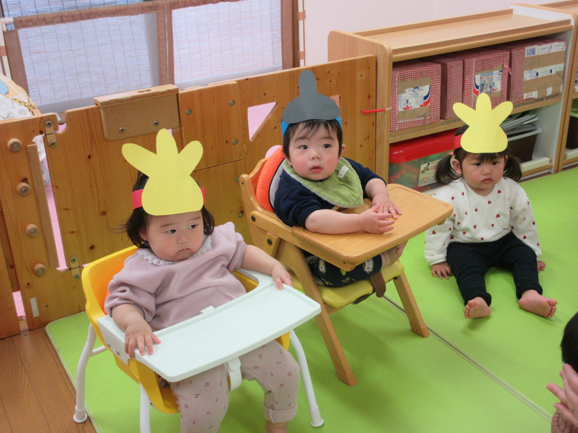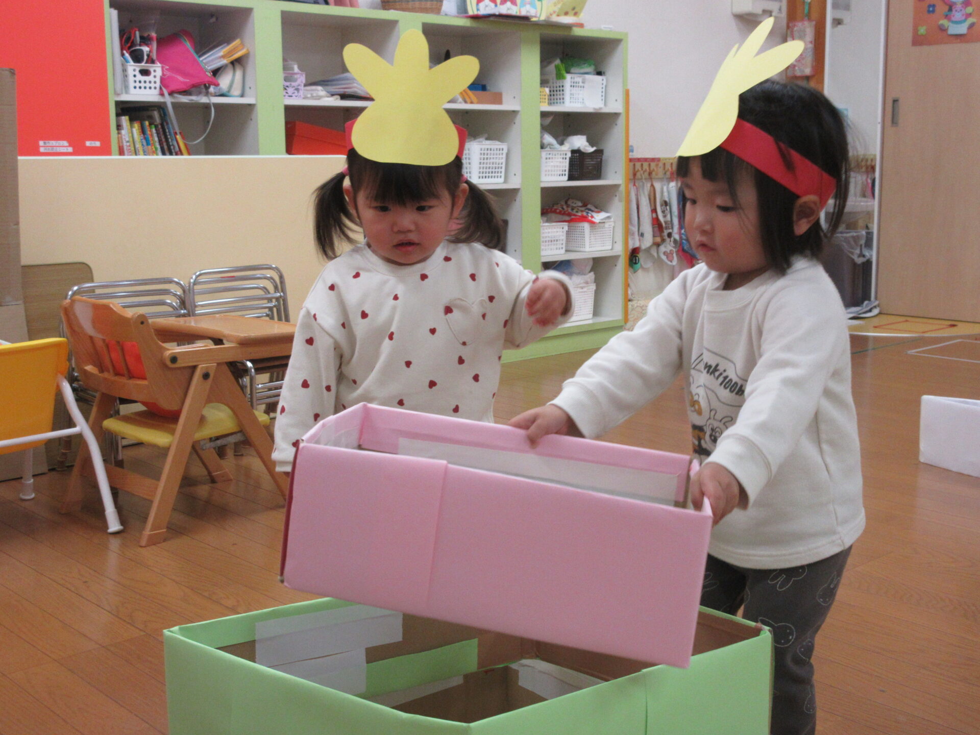 「大変!みんなで拾おう!」と、協力してひなあられを拾いました👏